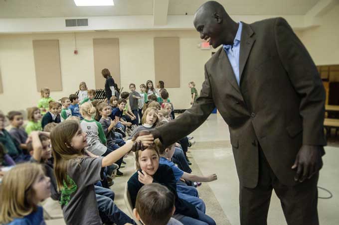The students at St. Patrick Catholic School watched bug-eyed as Reng Ajak Gieu towered over them and recalled his harrowing story of survival during the second Sudanese civil war, a conflict that lasted 22 years.