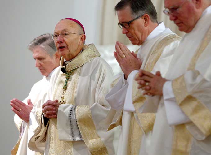 Auxiliary Bishop J. Douglas Deshotel led the Mass of Thanksgiving, welcoming Catholics and non-Catholics to pray for Pope Benedict.