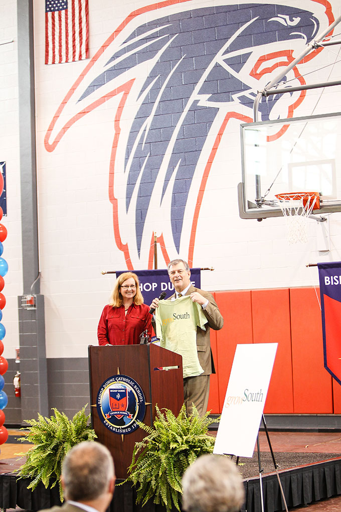 Dallas Mayor Mike Rawlings, public servants and the Bishop Dunne community joined Bishop Farrell in the school’s gymnasium to celebrate the investment in Catholic education and southern Dallas’ economic growth.