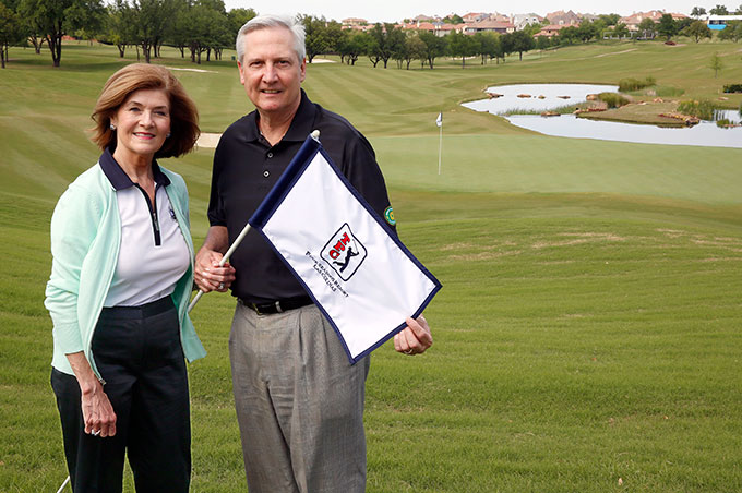 Vicky and Doug Lattner pose at the Four Seasons golf course in Irving, which will be home to the third annual Bishop Farrell Invitational golf tournament Sept. 16. (RON HEFLIN/Special Contributor)