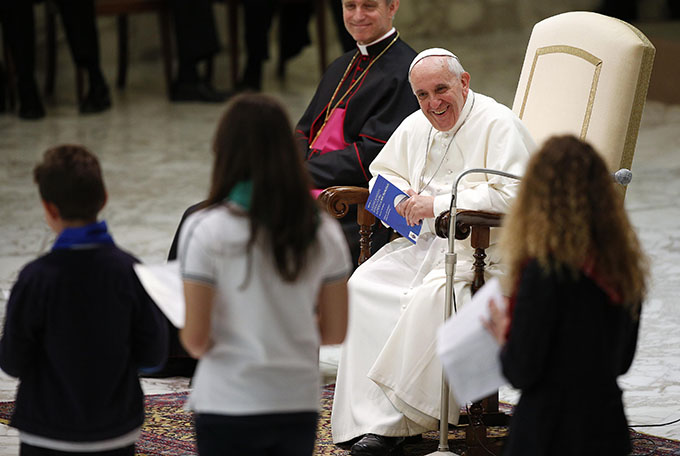 VATICAN CITY (CNS) — Pope Francis ditched a 1,250-word prepared speech to students saying it would be “a tad boring” to read out loud and opted instead to just quickly hit the high points and spend the rest of the time answering people’s questions.