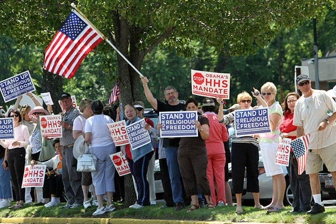 People participate in a rally in support of religious freedom in Garden City, N.Y., (CNS photo/Gregory A. Shemitz, Long Island Catholic)