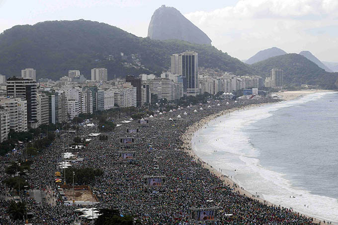 Pilgrims pack Copacabana beach for the World Youth Day closing Mass in Rio de Janeiro July 28. In attendance was an estimated 3 million people — one of the largest crowds in the history of World Youth Day. (CNS photo/Stefano Rellandini, Reuters)