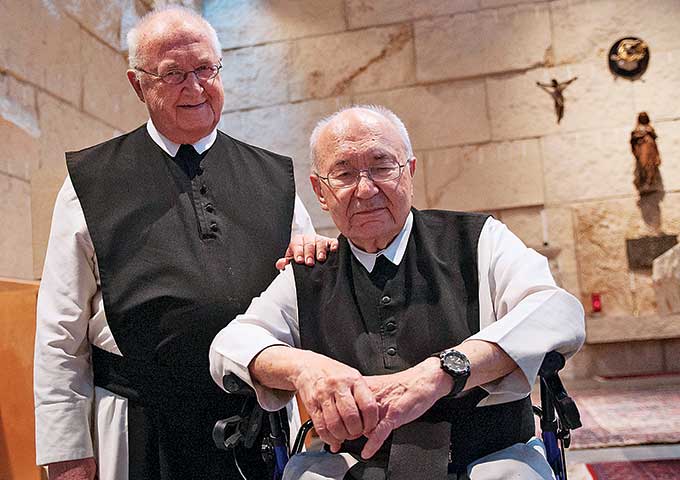 The Right Rev. Abbot Emeritus Denis Farkasfalvy, left, and Father Roch Kereszty were among more than a dozen Cistercian monks who fled their native Hungary as a result of communism’s persecution of the Catholic Church.