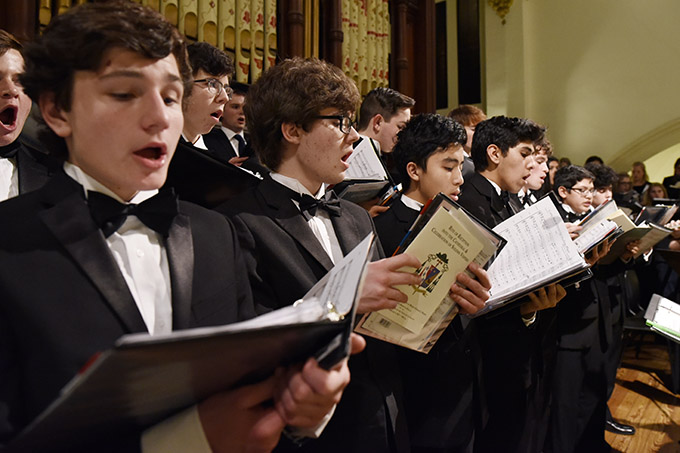 Bishop Lynch High School A Capella Choir members sing during the Mass for the Rite of Reception into the cathedral and the celebration of Solemn Vespers Feb. 8. (BEN TORRES/Special Contributor)