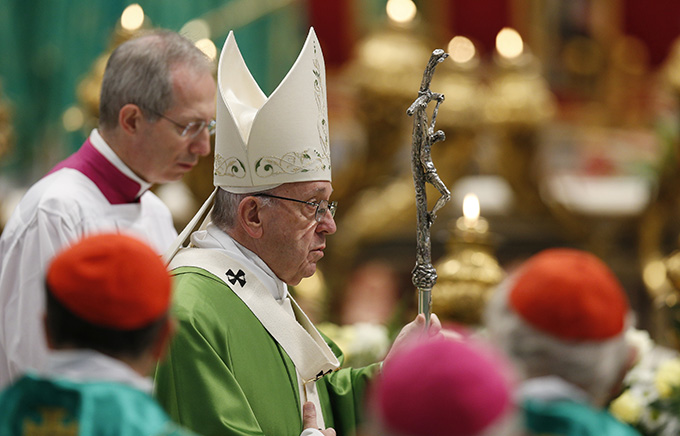 Pope Francis arrives to celebrate Mass marking the first World Day of the Poor in St. Peter’s Basilica at the Vatican Nov. 19. (CNS photo/Paul Haring)