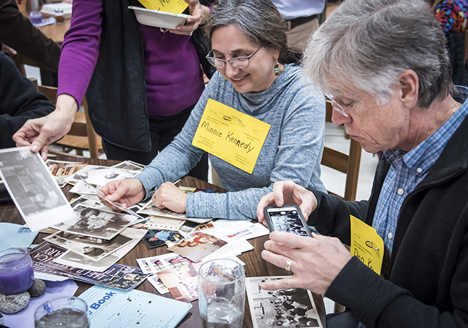 Minnie and Dan Kennedy look at photos of the Happening Retreat from the 1970s during The Happening Retreat at the Catholic Formation Center in Dallas, Saturday, Feb. 24, 2018. (RON HEFLIN/Special Contributor)