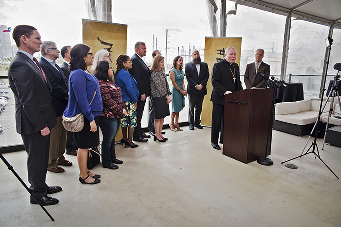 Bishop Edward J. Burns cited the words of Scripture, Pope Francis and the Statue of Liberty’s inscription in unveiling an initiative on April 6 that encourages North Texans to take to heart and practice the “Golden Rule” in their treatment of all people.