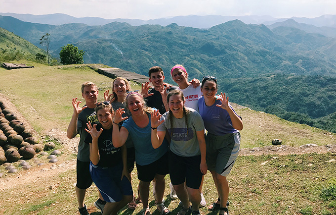 Jordan Gardenhire, a first-year missionary at Kansas State University for the Fellowship of Catholic University Students, poses with other Kansas State missionaries who participated in a mission trip to Haiti in March.
