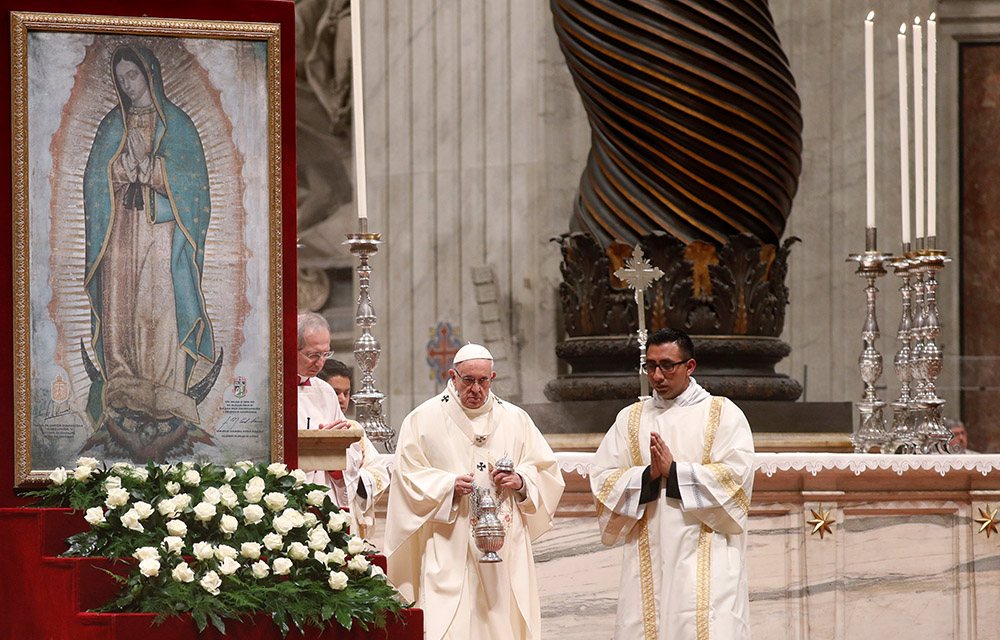Pope Francis celebrates Mass Dec. 12 marking the feast of Our Lady of Guadalupe in St. Peter’s Basilica at the Vatican. (CNS photo/Max Rossi, Reuters)
