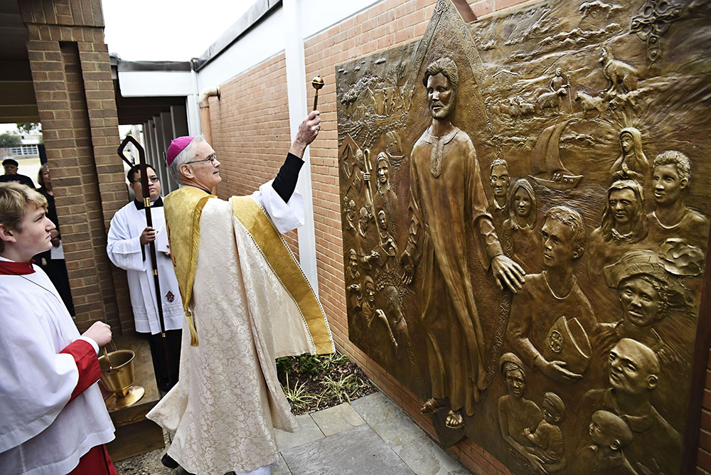 On Jan. 13, Auxiliary Bishop Greg Kelly blessed a bronze bas-relief, or raised sculpture, that depicts the story of the life and ministry of St. Patrick, as well as that of the St. Patrick community.