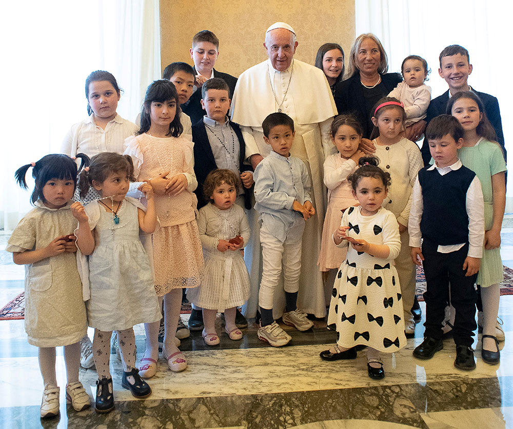 “Help me with this,” the pope asked the representatives. “Create a culture of adoption, because there are children who are abandoned, alone, victims of war and many others. May people learn to look at the medal and say, ‘I have the other half.'”
