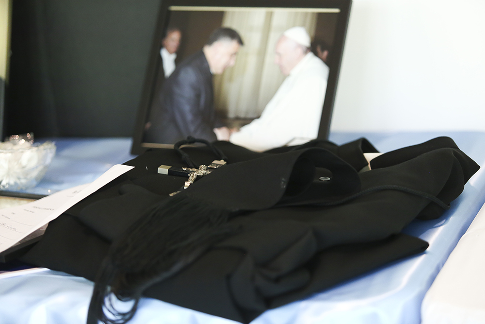 A crucifix on a priest’s cassock is seen at the Vocations Awareness Program at the University of Dallas on June 8, 2019. (Anthony Mazur for The Texas Catholic)