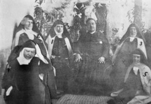 The founding nuns of the Discalced Carmelites of Tulancingo, Hidalgo, Mexico, whose community moved to Dallas in 1928, pictured in Mexico, along with Msgr. Martiniano Contreras. Archive Photo