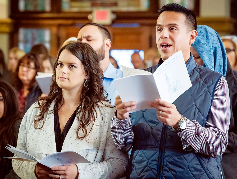 Crystal and Jonathan Gonzales, parishioners of St. Thomas Aquinas Catholic Church, at the Newlywed Mass on Nov. 2. The Diocesan Newlywed Mass honored newly sacrementally married couples (since Nov. 1, 2018) in the Catholic Church.