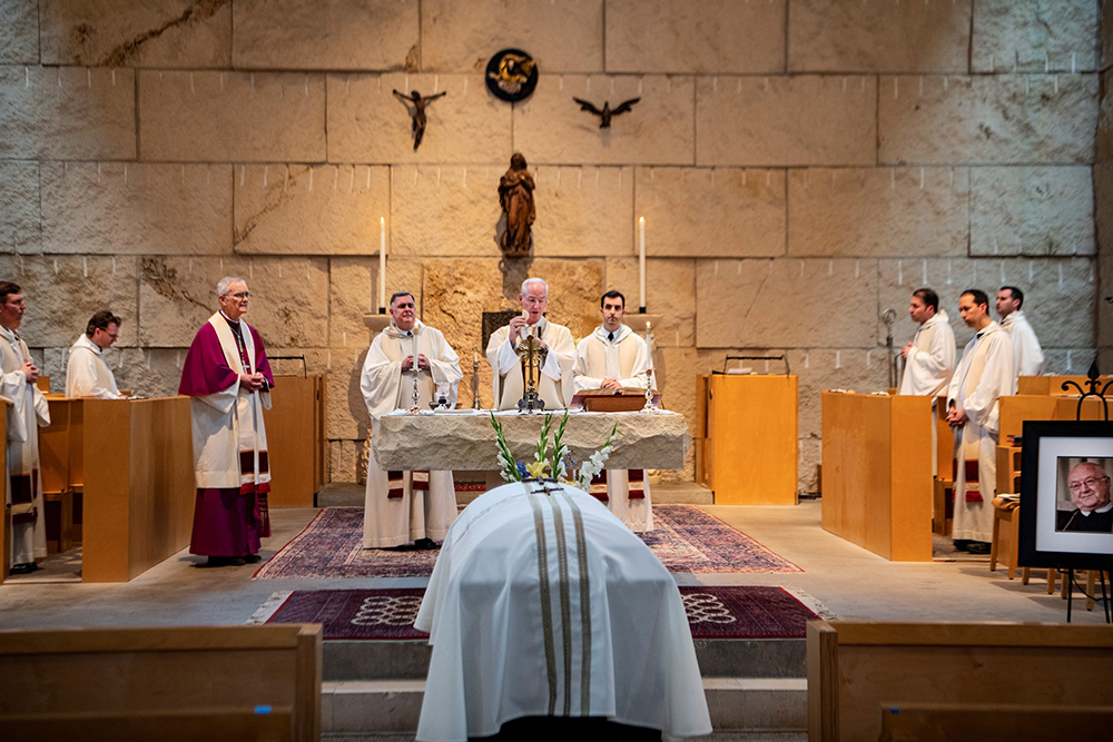Father Farkasfalvy’s life was celebrated Monday in the 28-year-old Abbey Church that he was a key figure in building.