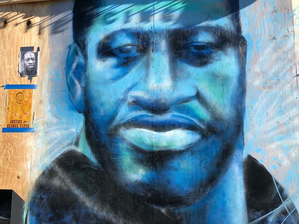 A painting of George Floyd is seen on a business in south Minneapolis May 30, 2020. (CNS photo/Maria Wiering, The Catholic Spirit)