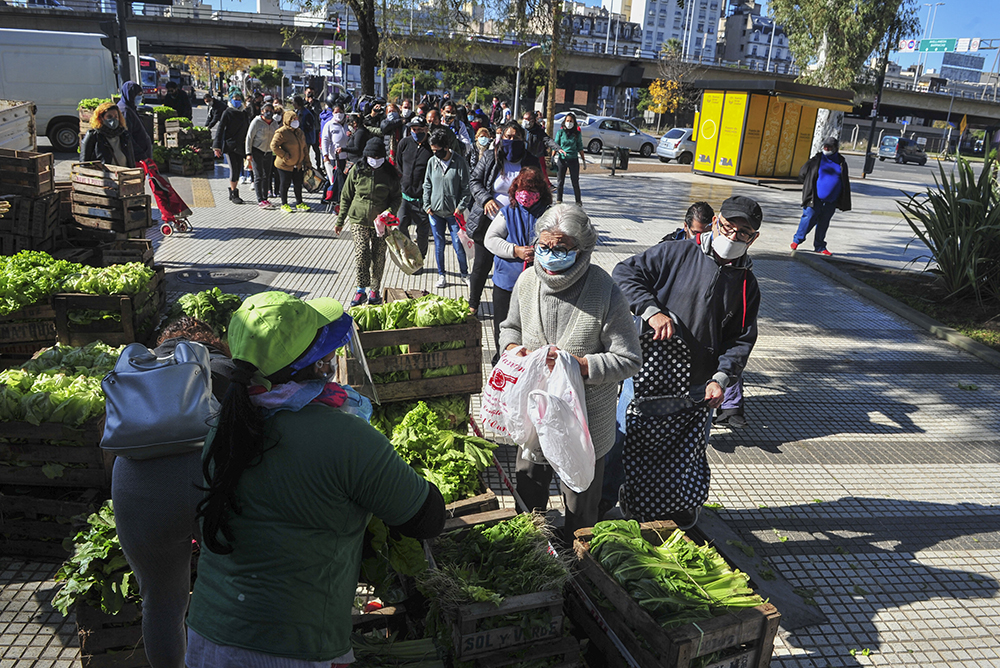 People in need stand in line for food distribution from farmers in Buenos Aires, Argentina, May 14, 2020, during the COVID-19 pandemic. The Catholic Church will mark the World Day of the Poor Nov. 15. (CNS photo/Alejandro Amdan, Latin America News Agency via Reuters)