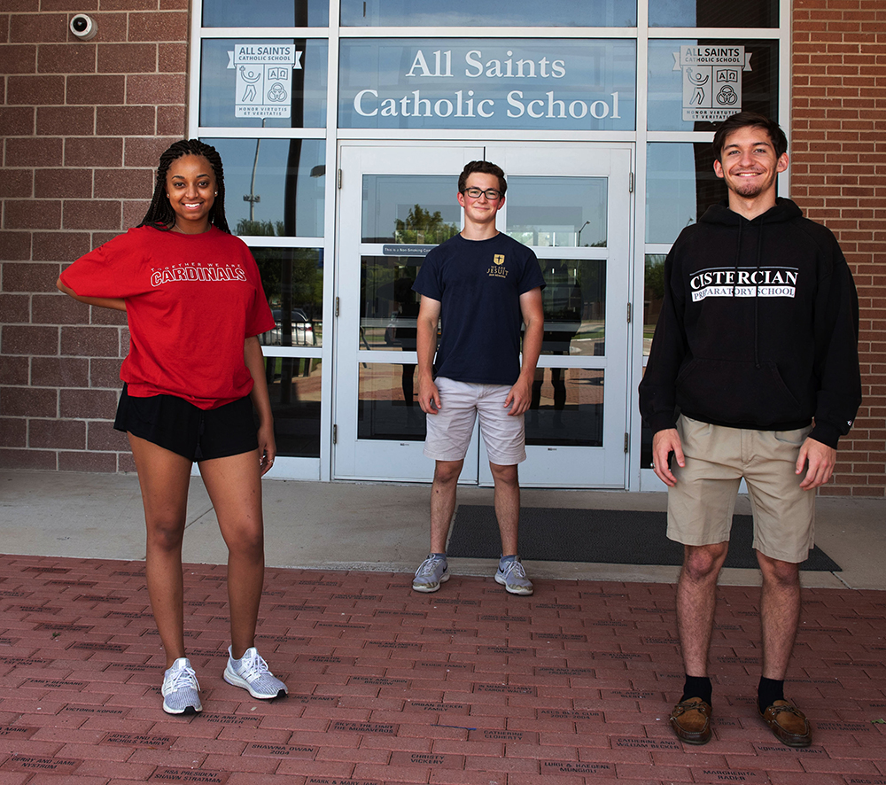 Former All Saints Catholic School classmates, from left, Delinah Hailey of John Paul II High School, Will Nickols of Jesuit College Preparatory and Alex Banul of Cistercian College Preparatory all were named Class of 2020 valedictorians of their respective schools. (JENNA TETER/Special Contributor)