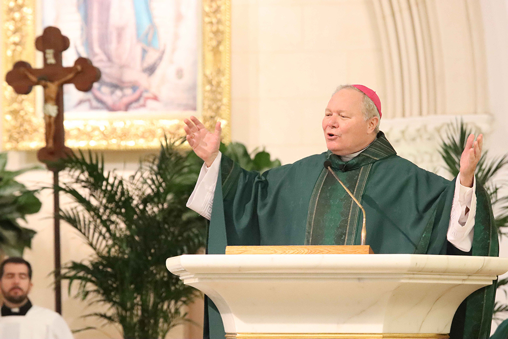 Bishop Edward J. Burns celebrates a special Back to School Mass for students within the Diocese of Dallas at the Cathedral Shrine of the Virgin of Guadalupe on Sept. 11. (DAVID SEDENO/The Texas Catholic)