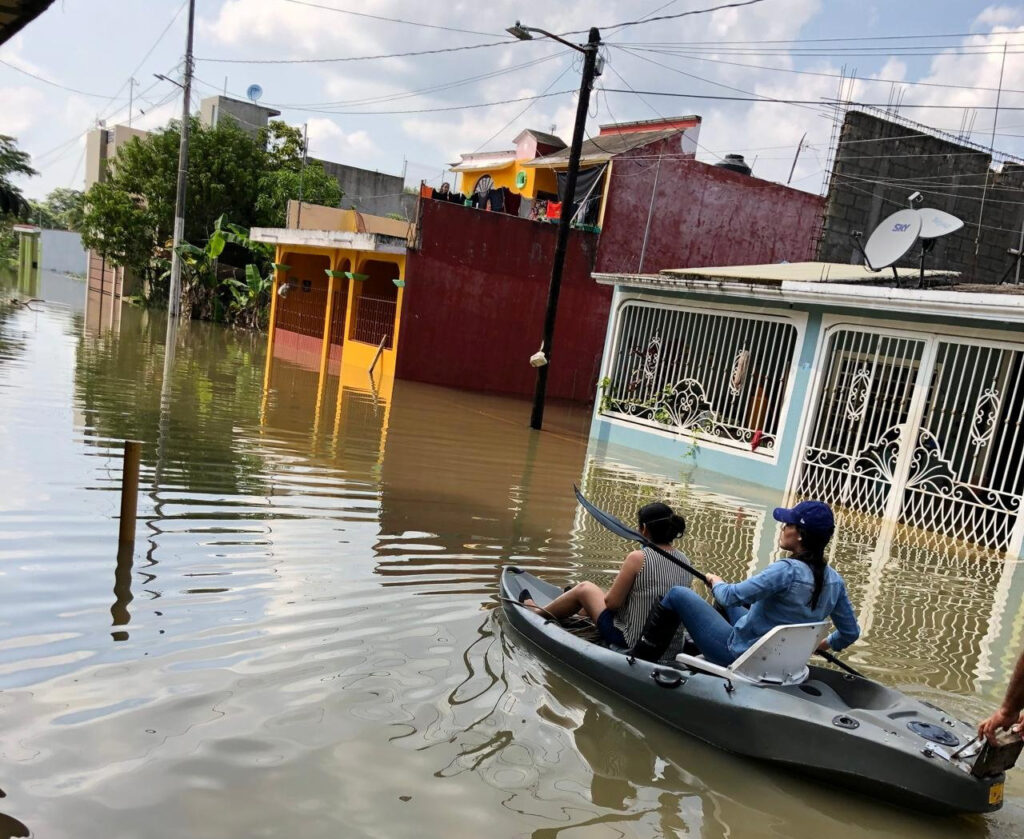 People use a kayak to move through floodwaters in Macuspana, Mexico, Nov. 9, 2020, in the aftermath of Tropical Storm Eta in this picture obtained from social media. An estimated 200 people died throughout Central America and southern Mexico because of Eta, and Hurricane Iota was due to make landfall in Central America in the same place as Eta. (CNS photo/Jesus Castellanos Perez via Reuters)