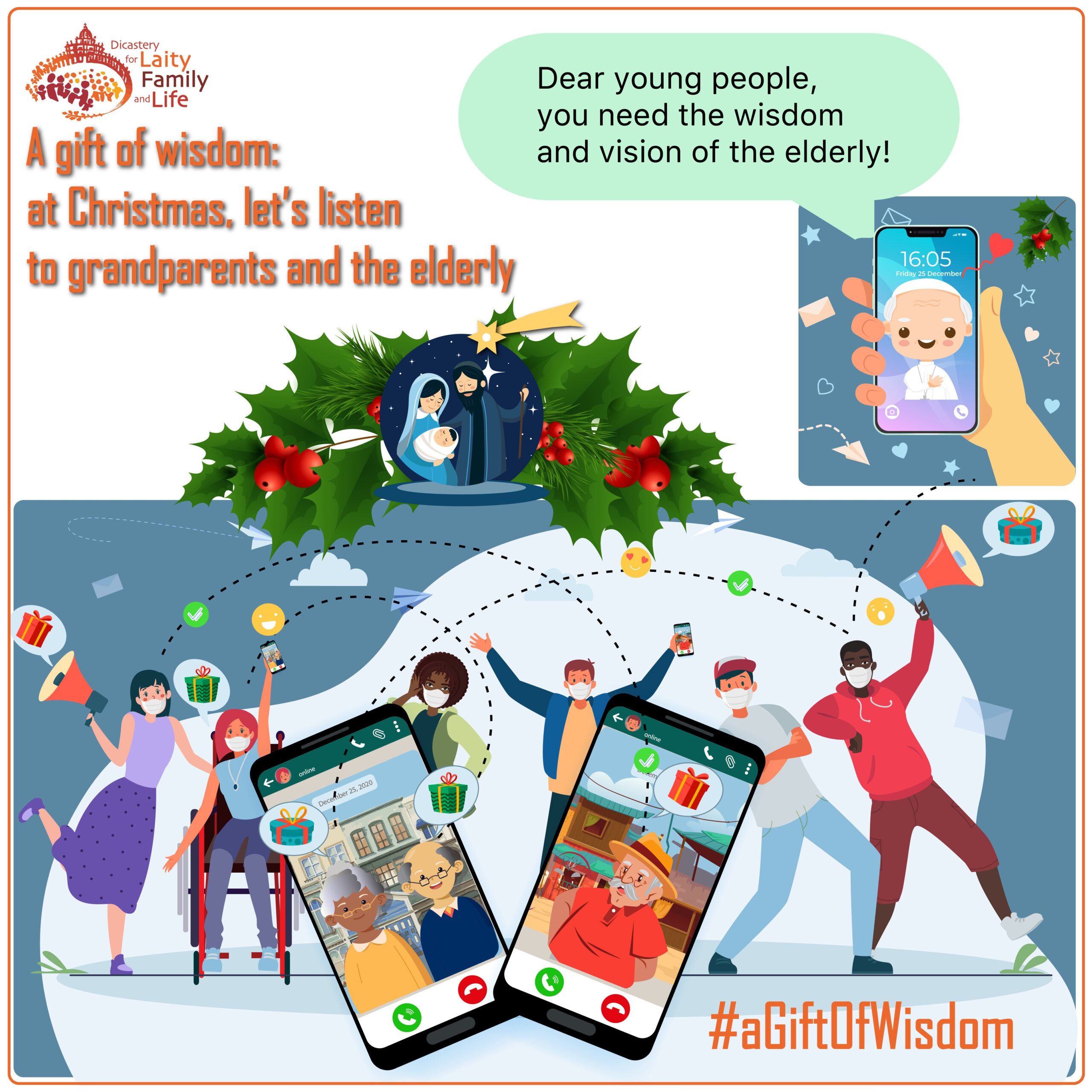“Today, in the difficult circumstances of a Christmas still overshadowed by the pandemic, we are proposing that young people post on social media a memory, a piece of advice or a ‘gift of wisdom’ they have received from one of the elderly people with whom they have formed a bond in recent months,” said the Dicastery for Laity, the Family and Life.
