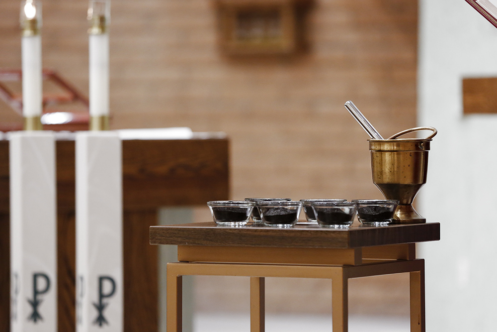 Ashes are set out for Ash Wednesday Mass at St. Helen Church in Glendale, Arizona, in this 2016 file photo. Ash Wednesday — March 1 this year in the Western church calendar — marks the start of Lent, a season of sacrifice, prayer and charity. (CNS photo/Nancy Wiechec)