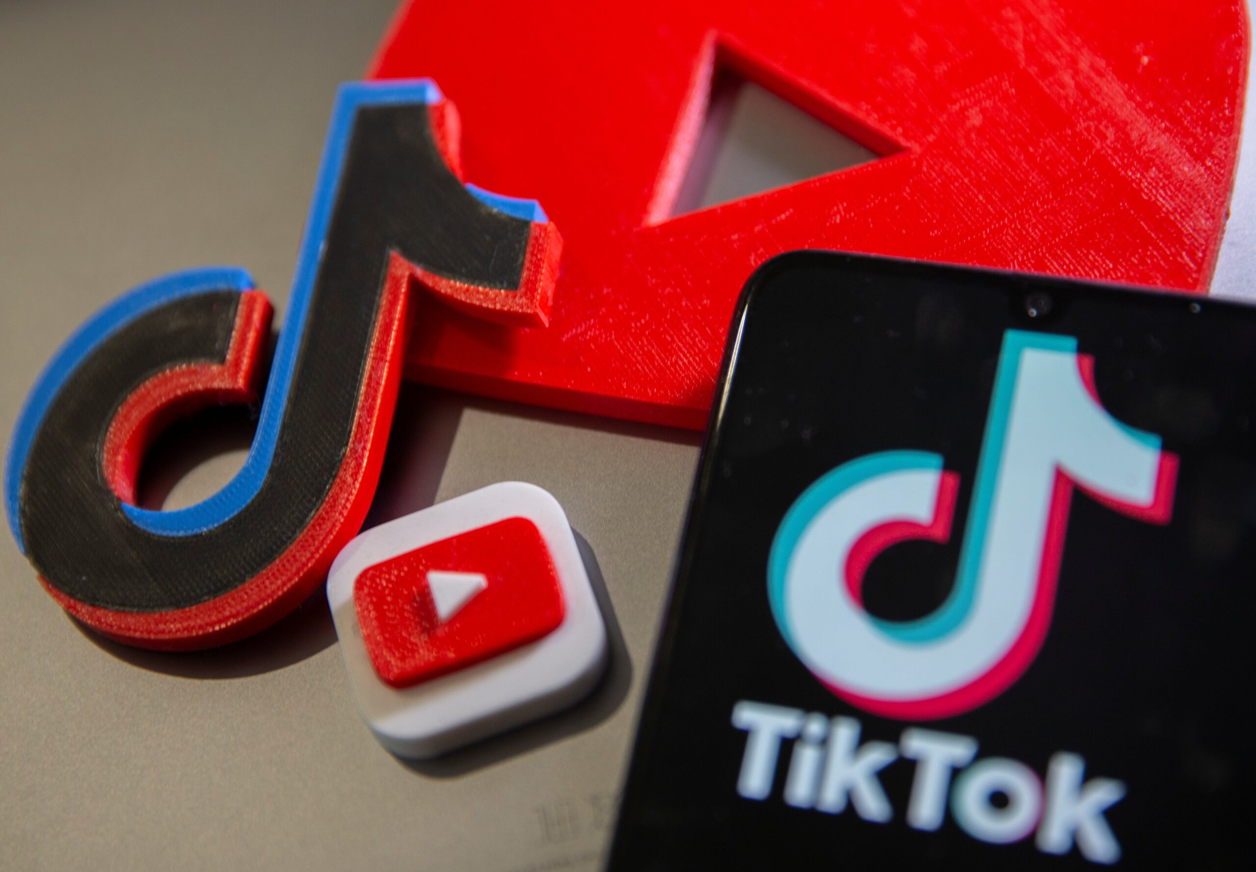 Three-dimensional printed YouTube and TikTok logos are seen in this Sept. 15, 2020, illustration. (CNS illustration/Dado Ruvic, Reuters)