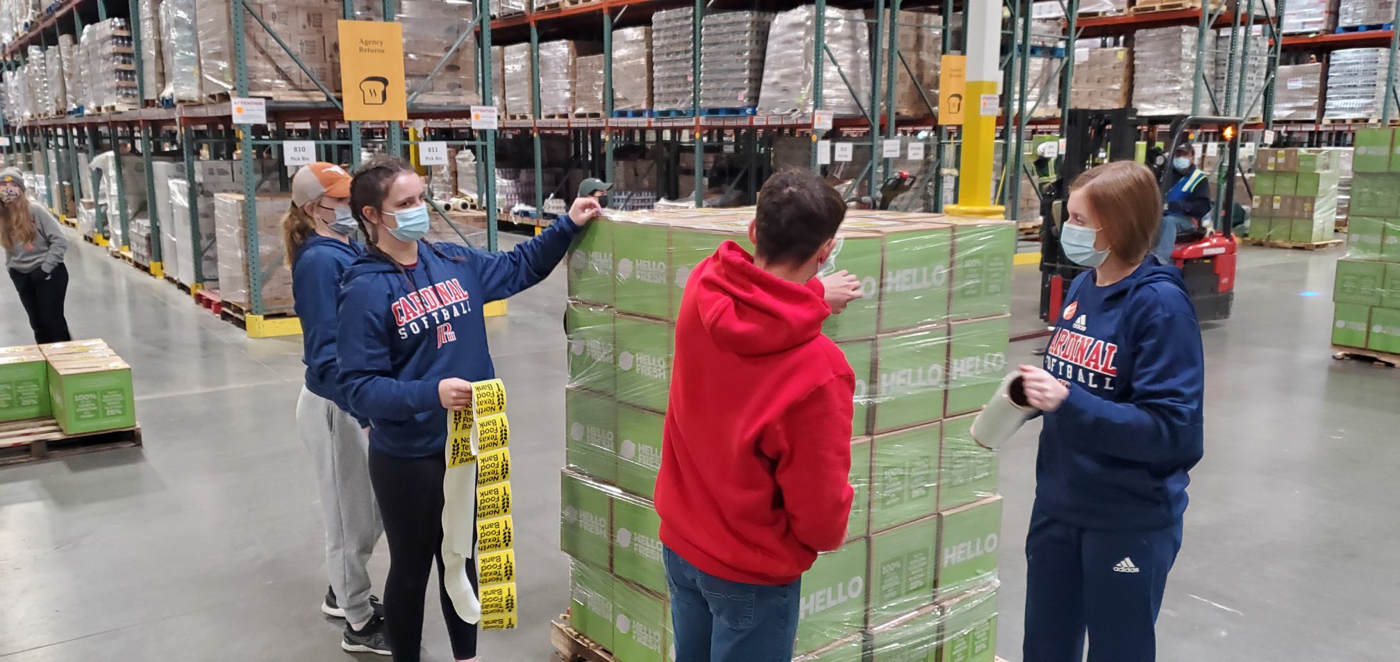 “Our volunteers unpacked, marked out/stickered, and repacked pallets,” said Jayme Baker-Nelson, JPII softball coach. “I’m proud of our girls and the Cardinal family. They recognized that there are others who are less fortunate and stepped up to the plate when called upon.”