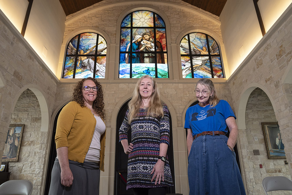 Foster parent Emma Hyde, left, poses with Brenda Nelson, center, secretary for C3-Children’s Care Coalition, and Susie Hughes, the foster/adopt ministry’s founder, at St. Gabriel the Archangel Catholic Church in McKinney, on April 15. C3-Children’s Care Coalition is a ministry dedicated to supporting both the children who can no longer live with their family of origin and the foster/adoptive families who can give them a forever home. (Ben Torres/Special Contributor)