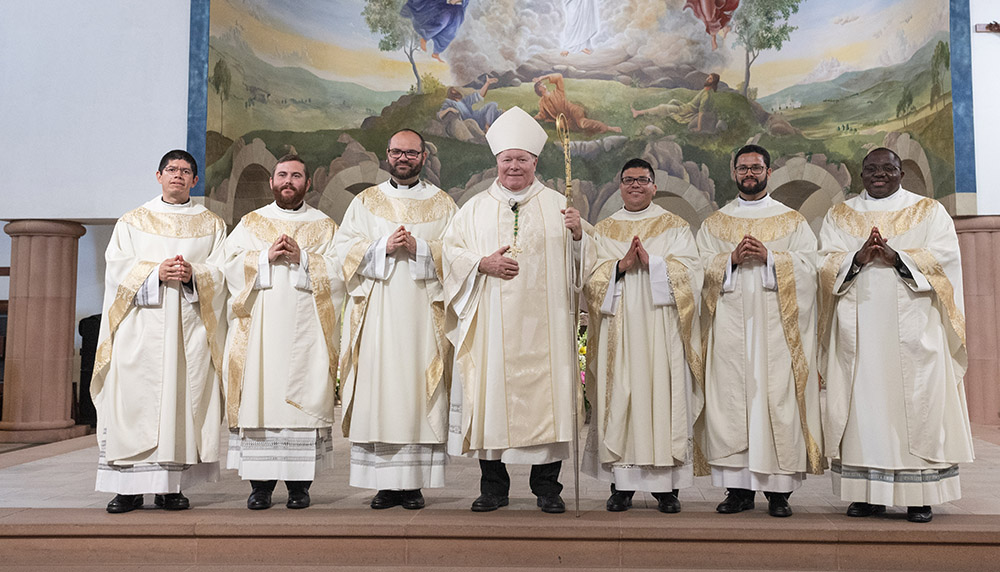 “I am proud of these six men who I call brothers and who will work with me as their bishop, side by side, in order to bring Christ to the people and to bring the people to Jesus Christ,” the bishop said. “They will exhaust themselves — in that holy exhaustion of proclaiming the Gospel message and celebrating Jesus Christ, through Word and sacraments.”