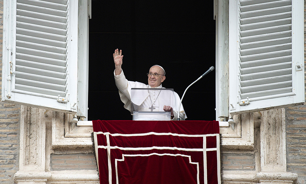 The pope appeared at the window of his studio in the apostolic palace to greet and bless those gathered in St. Peter’s Square and to deliver his address before praying the Angelus.