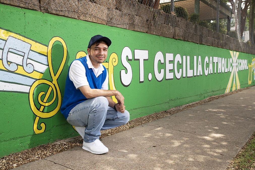 “Fue un momento de Dios”, recordó Lydia Torrez, directora de Santa Cecilia, acerca del día en que Guillermo Escalante que se identifica con el seudónimo artístico de Memo Gonzalez, llegó a su oficina para enseñarle bosquejos del mural que quería pintar, ofreciendo su talento, tiempo y materiales sin costo alguno.