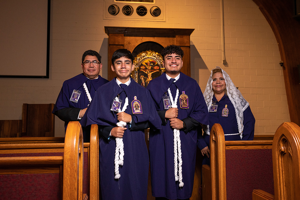 “Cada octubre mamá tiene las camisas blancas planchadas y las capas listas para que el día de la Misa todo este perfecto”, narró Frank. “Vamos rezando en familia antes de irnos a la iglesia, ponemos las cosas para la procesión en el carro y continuamos rezando junto con la Hermandad”.