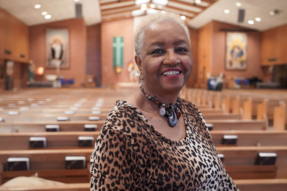 Melba Addison, a parishioner at St. Elizabeth of Hungary Catholic Church, poses in the sanctuary of the Oak Cliff church on Oct. 16.