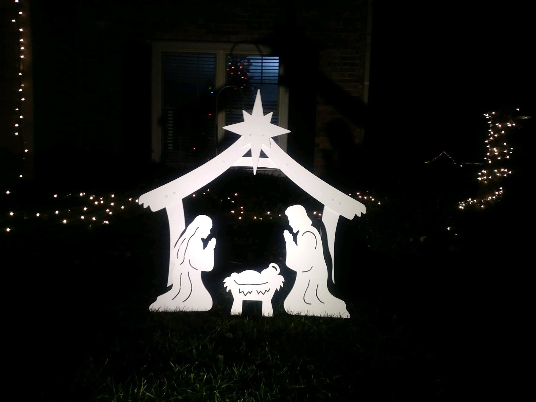 A spotlight illuminates a Nativity scene in Fishers, Ind., Dec. 3, 2021. (CNS photo/Mike Krokos, The Criterion)