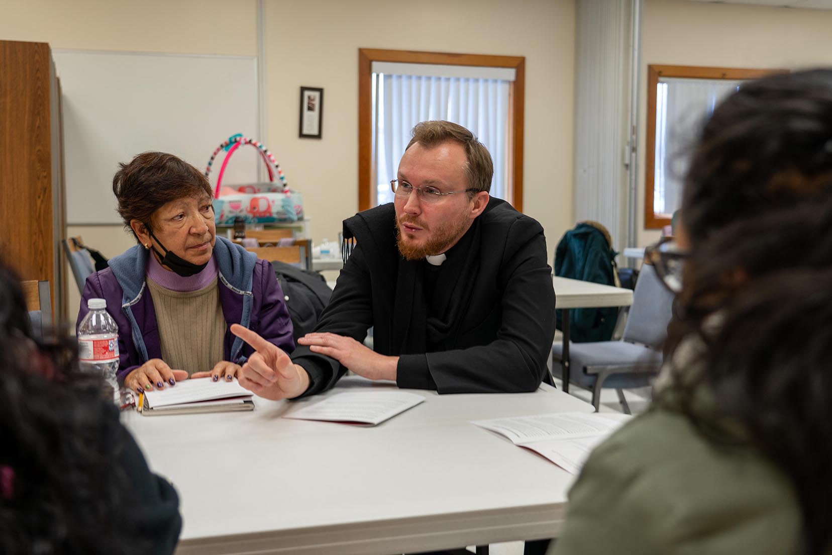 El padre Michal Markiewicz ayuda a dirigir uno de los diálogos grupales, durante la sesión catequética del 8 de enero en la parroquia de San José en Waxahachie. FOTOS RC/MICHAEL GRESHAM