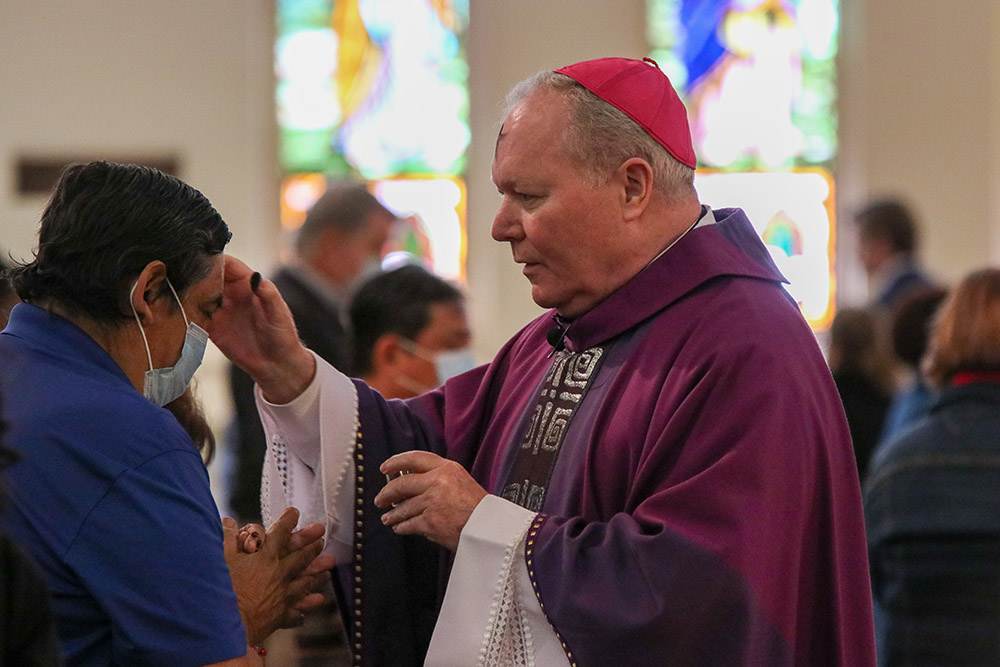 Bishop Edward J. Burns, celebrating an Ash Wednesday Mass at the Cathedral Shrine of the Virgin of Guadalupe on March 2, urged the faithful to observe Lent by binding themselves in prayer with the people of war-torn Ukraine.