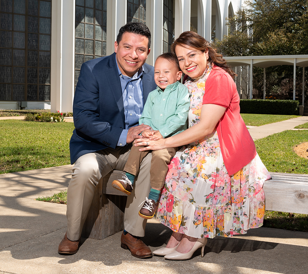 Maria Gonzalez-Rocha, her husband Israel Rocha and their 2-year-old Isaias Teo Rocha, outside of St. Monica Catholic Church in Dallas, on Saturday, March 26, 2022.