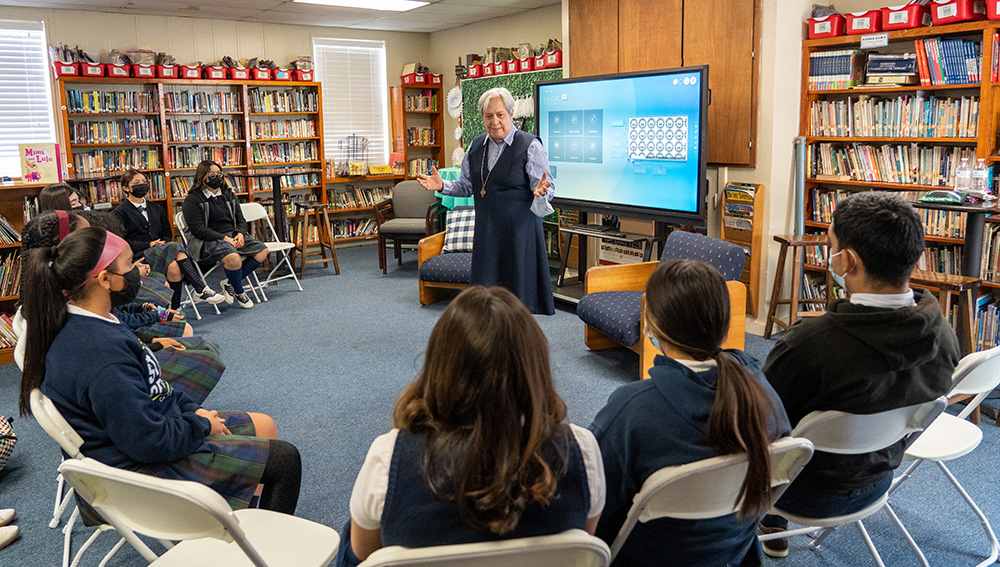 En su visita a SMC, la hermana Pimentel conversó con los estudiantes sobre el llamado de Dios a amar al prójimo.