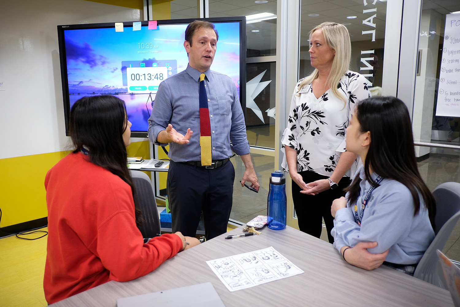 “The conflict, generally speaking, is between our digital native – the student – and the Catholic Church,” he said. “There is cyber bullying, and for a lot of our kids, their initial engagement has been how to solve that problem with a Catholic lens. The lab encourages broadening that question with them. They have hybrid coursework online, but the question is how are you going to be able to build community as you move forward. Students are in class groups on Instagram and clubs. We have social media guidelines in our handbook. We are a 24-7 school, they are fully aware of that from day one. We would shift our purvey if they were to create something through this program. They could be ideating a benefit for the school as well as the at-large community of Collin County. After all, the school’s motto is ‘Seek to Serve.’”