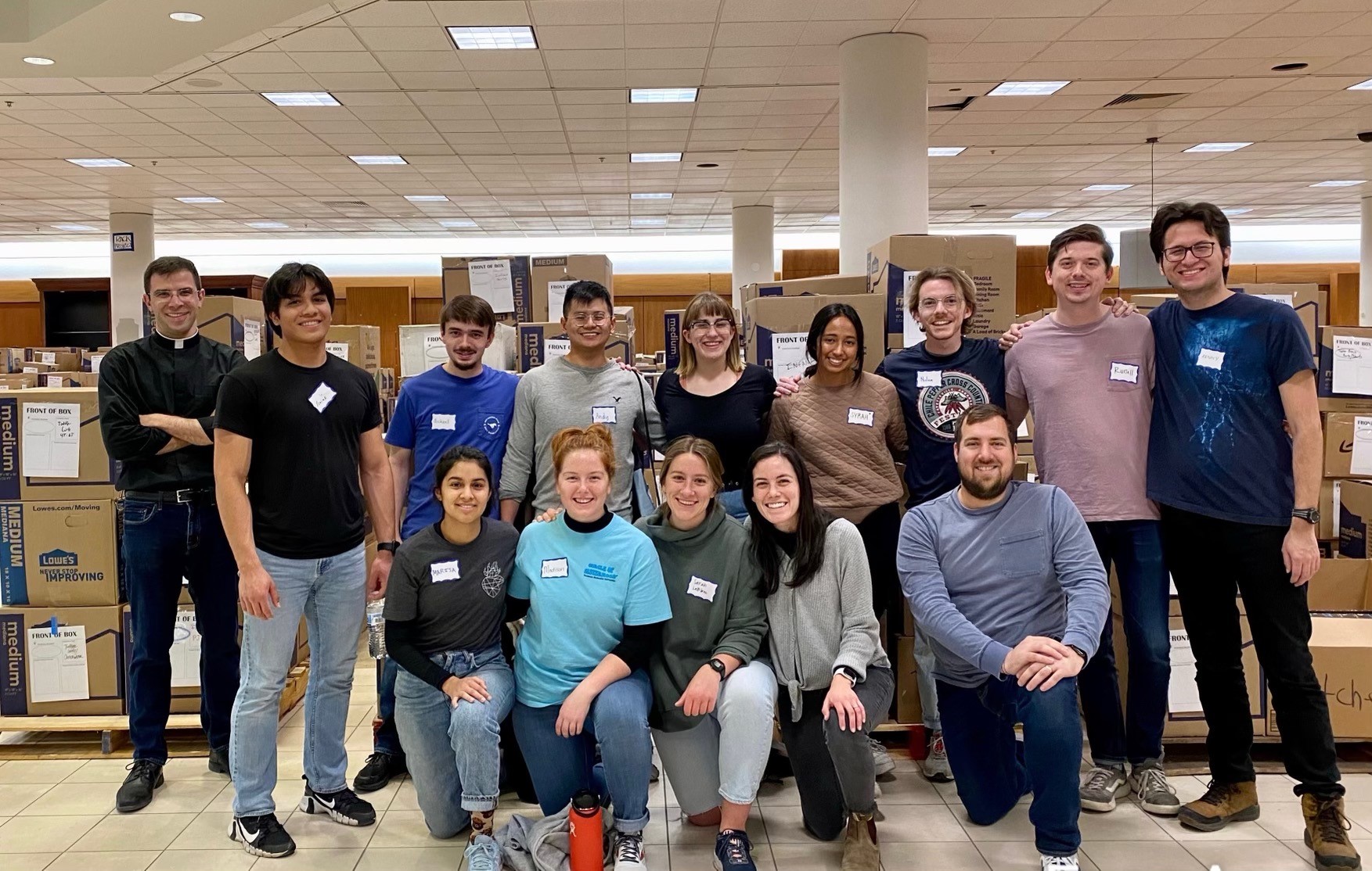 Father Wade Bass, back left, chaplain for Catholic Campus Ministry at SMU, is pictured with SMU student missionaries who participated in a mission trip to Denver March 12-19, where they served Catholic Charities at three homeless shelters.