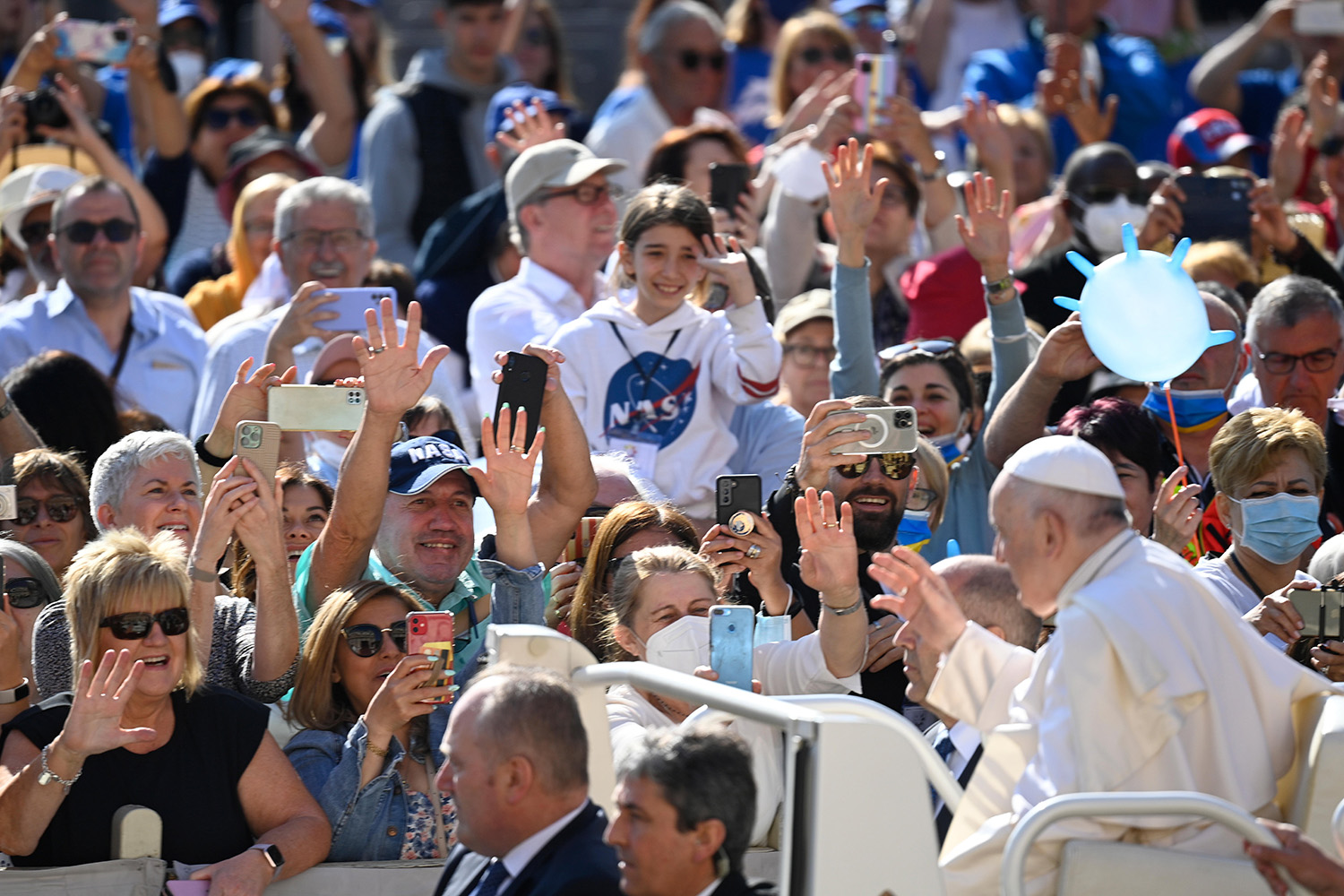 Pope Francis greets people as he arrives for his general audience in St. Peter’s Square at the Vatican May 11, 2022. (CNS photo/Vatican Media)