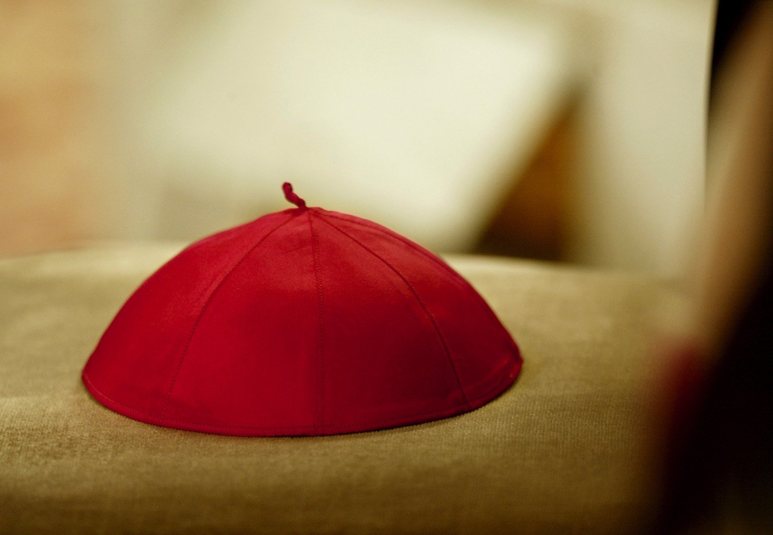 A file photo shows a cardinal’s zucchetto, or skull cap, on a chair during an ordination Mass at St. Peter’s Basilica. Pope Francis announced May 29, 2022, he would create 21 new cardinals in August; the 16 who are under the age of 80 include Bishop Robert W. McElroy of San Diego. (CNS photo/Paolo Cocco, Reuters)