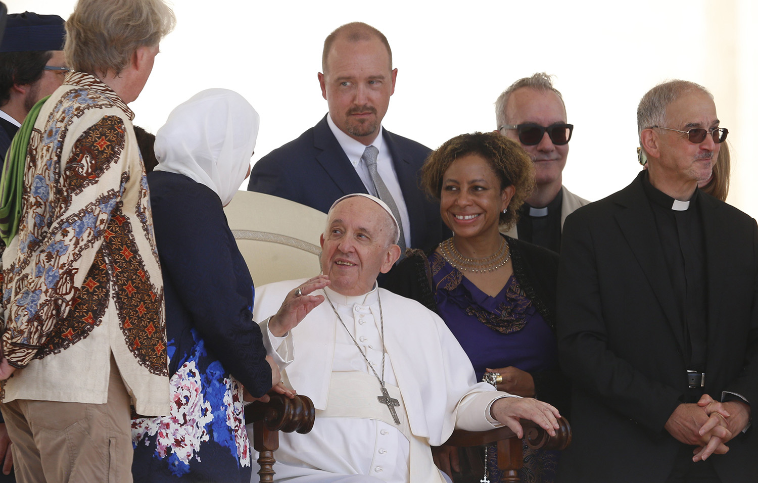 Pope Francis greets people during his general audience in St. Peter’s Square at the Vatican June 1, 2022. (CNS photo/Paul Haring)