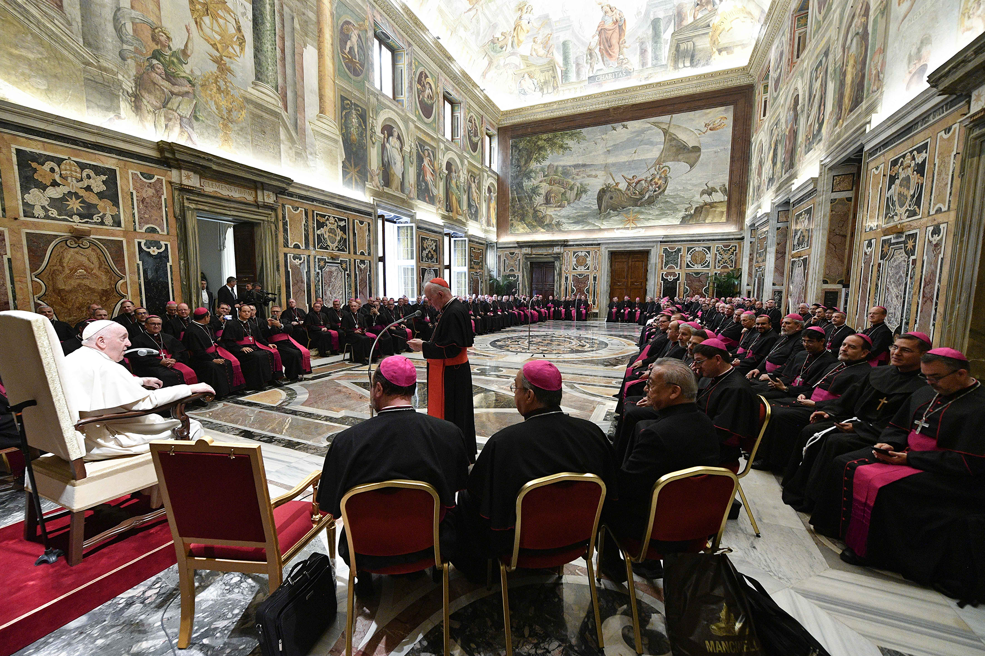 Because the COVID-19 pandemic had forced the suspension of the annual formation course for new bishops, the 2022 courses were held in multiple sessions with the first groups of bishops — more than 150 of them — meeting Pope Francis in early September, and bishops from mission territories meeting him Sept. 17.