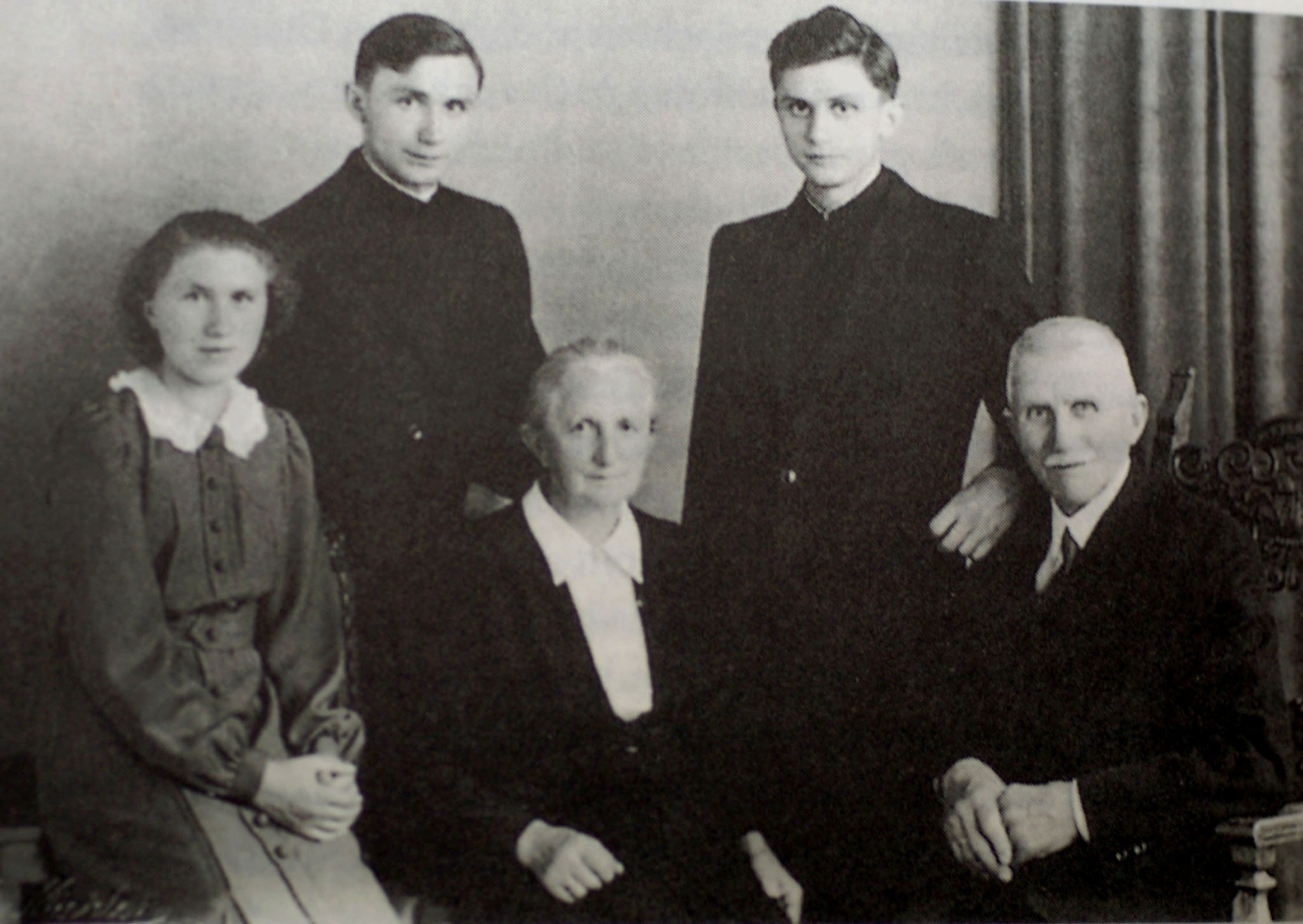Joseph Ratzinger, second row at right, is pictured with his sister, Maria, brother, Georg, and parents, Maria and Joseph in this July 8, 1951, file photo. Pope Benedict died Dec. 31, 2022, at the age of 95 in his residence at the Vatican. (OSV News photo/Catholic Press Photo)