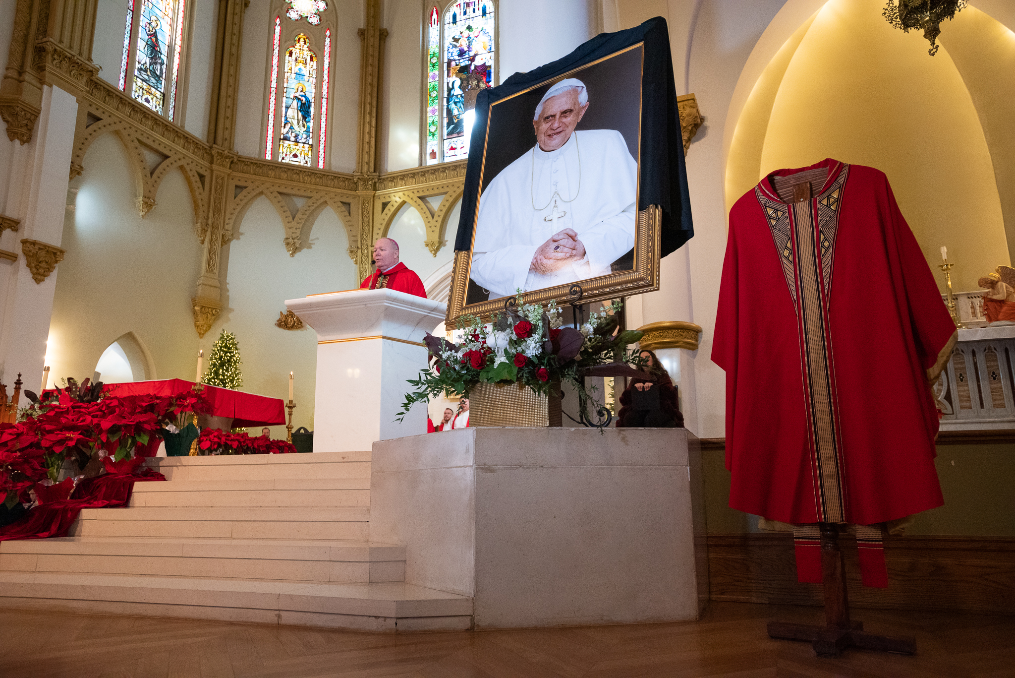 Cientos de personas se reunieron para celebrar la vida del difunto Papa emérito, cuya imagen se exhibió de manera prominente con un retrato grande cerca del altar. Al lado se exhibieron las vestimentas rojas que usó durante una visita a Dallas en 1991 el entonces cardenal Joseph Ratzinger, como se le conocía antes de ser elegido Papa.