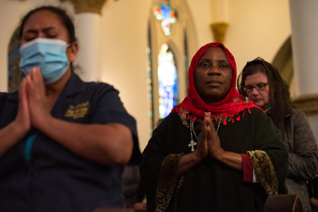 Fieles oran de pie durante la Misa en memoria del Papa Benedicto XVI en la Catedral de Guadalupe en Dallas, el 5 de enero. (Especial para RC/Ben Torres)