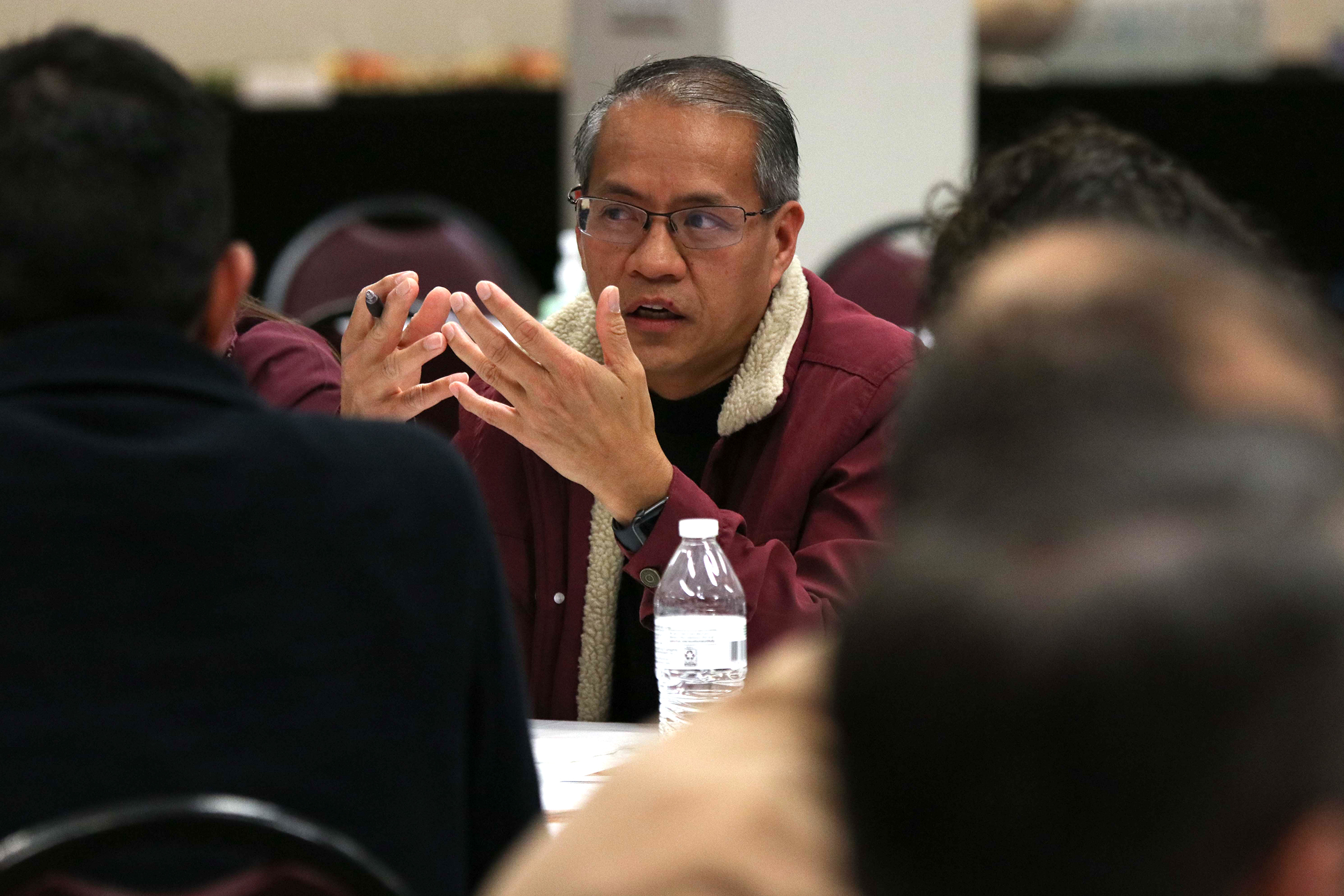 Lito Dancel, a parishioner at Divine Mercy of Our Lord Catholic Church in Mesquite, takes part in a discussion during the Diocese of Dallas Synod Listening Session on Jan. 28 at St. Paul the Apostle Catholic Parish in Richardson. (Michael Gresham/The Texas Catholic)